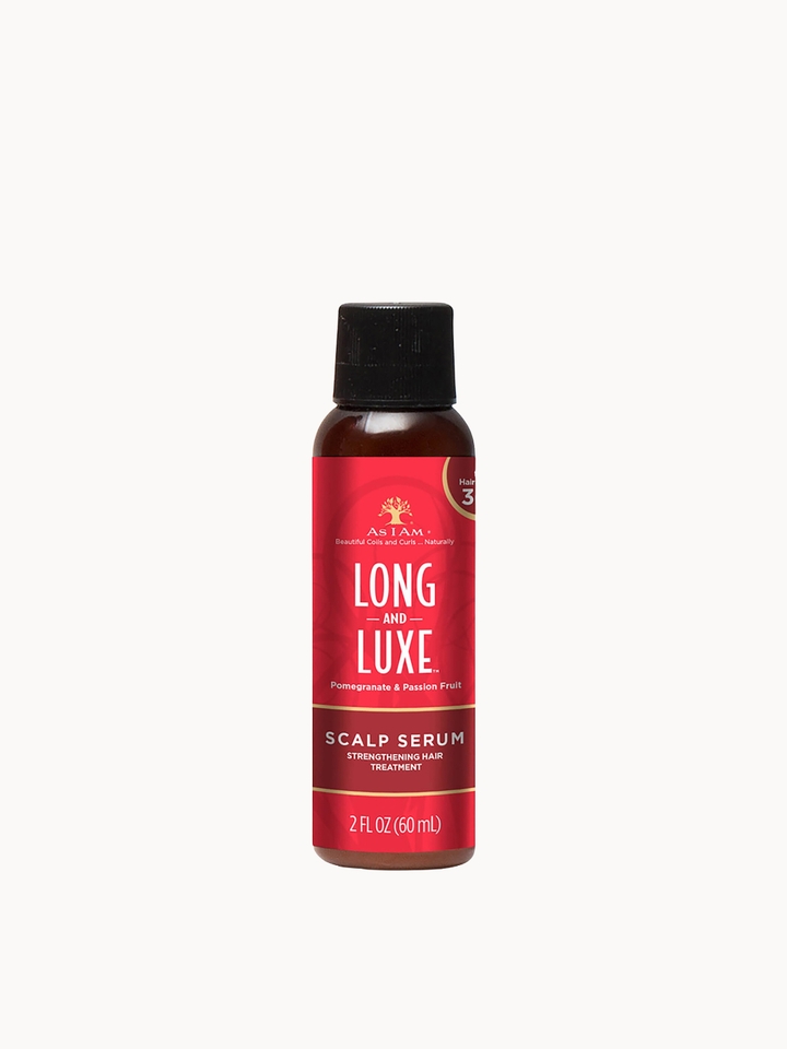 Achieve longer, stronger locks with As I Am Long and Luxe Scalp Serum; a fortifying and revitalising treatment that rejuvenates the scalp to promote healthier hair follicles. Harnessing the powers of Biotin, Pomegranate and Hydrolysed Lupine Protein, the deeply nourishing formula moisturises a dry scalp for long-lasting comfort.