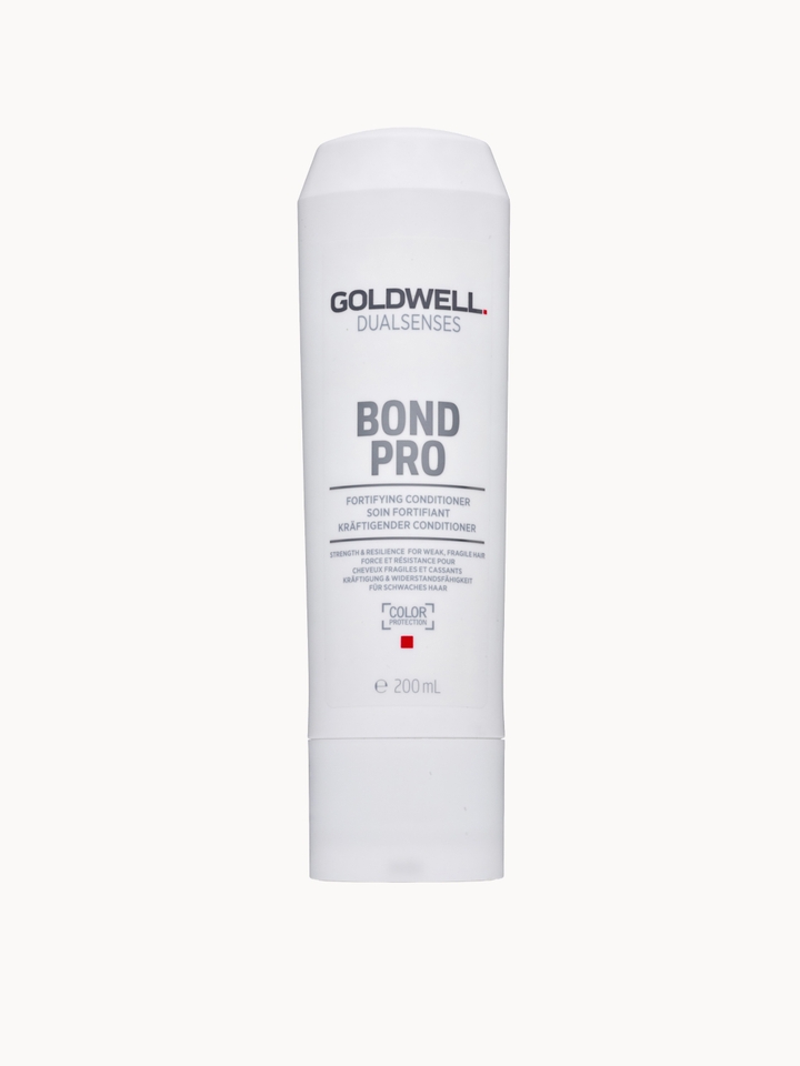 The Goldwell Dualsenses Bond Pro Fortifying Conditioner is designed to nourish and strengthen fragile, damaged hair, promoting locks that look and feel reenergised. The expert formula is enriched with the signature microPROtec complex and inter-amino-bond-builder. These innovative haircare technologies feature to nurture each strand of hair, supporting its natural structure. The fortifying conditioner features soy protein for its revitalising benefits, helping to reinforce the hair and promote healthy-looking locks.