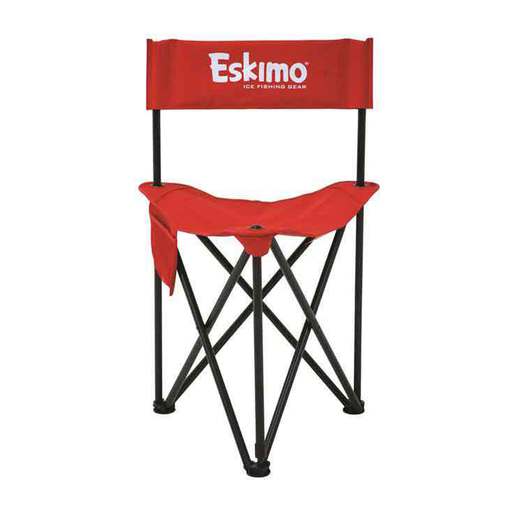 Eskimo Extra Large Folding Ice Fishing Chair - Built bigger for more comfort! The XL Folding Ice Chair is 4in taller and features a larger seat for more displacement. These Eskimo chairs are ergonomically designed, providing you with a comfortable place to sit while on the ice. The triangular design makes them perfect for jig fishing. When you need to move quickly from hot spot to hot spot, the triangular folding arrangement and travel bags make the Eskimo ice fishing chairs easy and quick to transport. The chairs are a must have for the on-the-go ice fisherman. Compact and Versatile 19mm Steel poles, durable construction Tough 600 Denier Fabric Carrying bag included Weight capacity 250lbs Seat Height: 18.5in