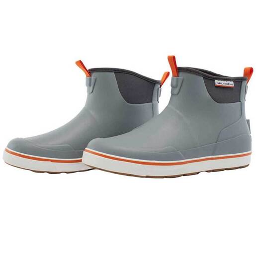 Grundens Men's Deck Boss Ankle Fishing Boots - DECK-BOSS Ankle Boots are built with the comfort of anglers in mind. Keeping anglers planted to the deck when the fish of a lifetime shows up, and there is no time to think about anything other than what's on the end of the line. All-Day Comfort Foot-Bed Asymmetrical Top-Line Anti-Microbial, Temperature Regulating Liner 100% Waterproof Non Marking Siped Gum Rubber Outsole ensures superior traction on all surfaces Style: 60008