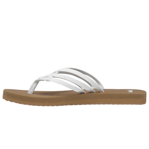 Sanuk Women's Yoga Sandy Flip Flops - Like your favorite feel-good bathing suit, but for your feet! Slim, nylon straps keep them comfortably crisscrossed, while real yoga mat foam footbeds with arch support offer celestial comfort. Om Yeah! Nylon upper Featuring multiple straps EVA midsole Anatomical yoga mat footbed with arch support Packable Vegan recycles materials 47% Recycled EVA foam, 6% straw & 47% virgin rubber outsole Style: 1112830