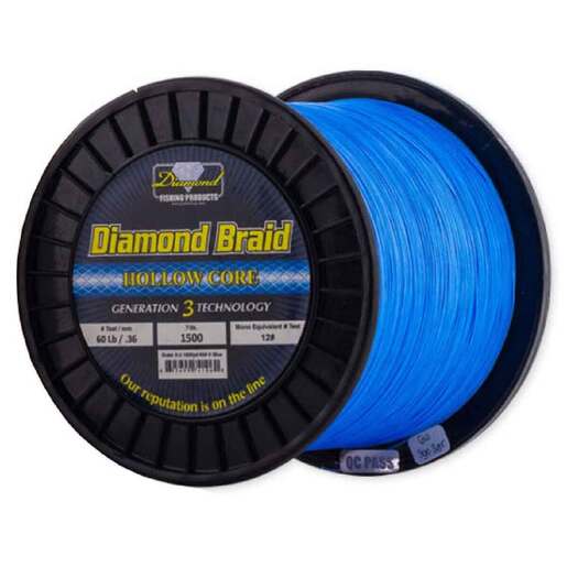 Diamond Fishing Products Diamond Generation 3 Hollow Core Braided Fishing Line - Introducing the next leap in High Performance Fishing Line. Diamond Fishing Products shifts hollow-core braid manufacturing into high gear – Diamond Braid Generation 3. Hollow-core Braid is used in some of the most demanding fisheries in salt water. Higher-grade materials strengthened with state-of-the-art braiding techniques give Diamond Fishing Products’ Generation 3 Braid a unique combination of fishing characteristics. Designed for the most demanding technical fishing Easiest splicing braided fishing line in existence Fine diameters attuned to maximum reel capacities Stays round under tension and while splicing Color Locked for permanent retention
