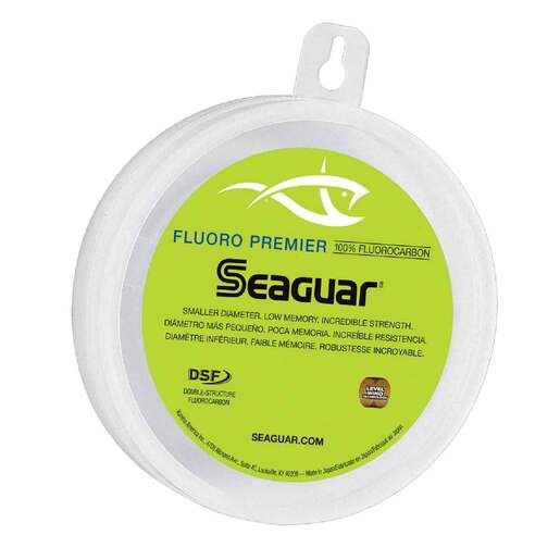 Seaguar Fluoro Premier Fluorocarbon Fishing Line - Seaguar Fluoro Premier provides a smaller diameter and is made using Seaguar exclusive double-structure process to be both strong and supple. Their exclusive double-structure process fuses two 100% fluorocarbon resins to create a leader with smaller diameters yet with exceptional knot and tensile strength. Extremely soft with low memory - it’s a perfect shock leader and versatile choice for a variety of presentations. High abrasion resistance High knot strength