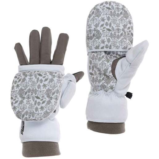 DSG Outerwear Women's Flip Top 4.0 Hunting Mitt - Warmth, comfort, and versatility combine in this Flip-Top 4.0 Mitten with liner glove. The built-in liner glove is made with polyester spandex material and features a touch screen compatible index finger and thumb, allowing you to use your phone or other devices without having to remove your mittens. Quiet brushed waterproof/windproof fabric DWR treatment to shed water off the fabric Branded 80g Thinsulate insulation Built in liner glove portion using polyester spandex material Grippy silicone printed palm in “leaf” pattern Zipper pocket on the back of the hand to add heat pack or to open for venting Magnets to securely hold back flip top mitt portion and thumb Style: 517992