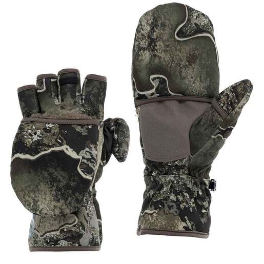 DSG Outerwear Women's Realtree Excape Sherpa Flip Top Hunting Mitt - Designed with hunters in mind, DSG Outerwear's Sherpa Flip Top Mittens combine comfortable Polyester/Spandex stretch fabric bonded with a cozy shearling interior, providing you with unparalleled warmth and comfort during your hunting trips. Comfortable polyester/spandex stretch fabric boned with a cozy shearling interior Faux leather palm for durability Magnets to securely hold back flip top mitt portion and thumb Glove clips to keep gloves together for easy storage Style: 518395