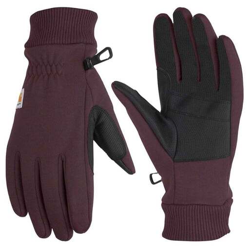 Carhartt Women's Wind Fighter Thermal-Lined Fleece Knit Cuff Work Gloves - Howling winds won't keep you from getting the job done. These women's gloves are made of soft, wind-resistant fleece fabric to help protect your hands in bad weather. The touchscreen-compatible palm and thumb allow you to use electronics without taking off your gloves. Wind-resistant one-sided fleece shell Wind Fighter technology tames the wind Digital grip palm FastDry lining wicks sweat Digital grip thumb reinforcement Knit cuff Touch-sensitive Style: GF0622