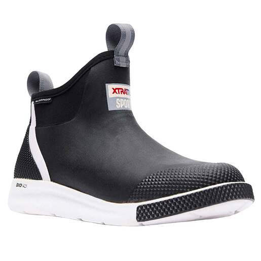 Xtratuf Men's Ankle Deck 6in Pull On Boots - This boot delivers the comfort and agility of a sneaker with long cushion life and high energy return, all while offering the same traction benefits of a full rubber boot. 100% waterproof Moisture-wicking mesh lining Perforated EVA/PU insole High Performance, ultra-durable, lightweight BioLite midsole SRC slip resistant non-marking Chevron ground contact EVA outsole Pull-on tabs Style: ADSM000