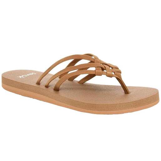 Sanuk Women's Yoga Sandy II Flip Flops - Step into style and comfort with a fashionable take on our classic yoga mat sandals. The Yoga Sandy straps stay perfectly crisscrossed while real yoga mat foam footbeds provide that classic Sanuk om-mazing comfort. With a flexible, durable design and eco-friendly materials, they’re as kind to the planet as they are to your feet. Multi strap jersey upper The original memory foam Yoga Mat footbed that molds to your foot for instantly Om-mazing comfort Custom Happy U wave tread sponge rubber outsole made with 53% recycled material Style: 1169691