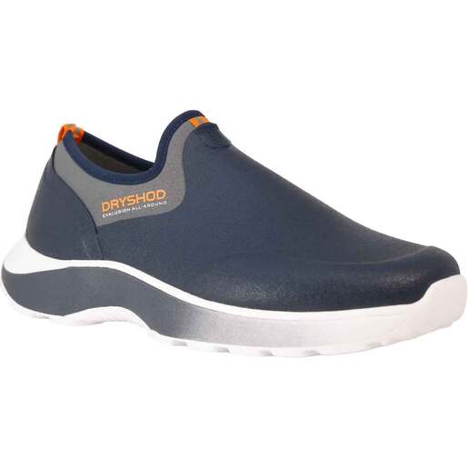 Dryshod Men's Evalusion Waterproof Slip On Shoes Trek with confidence through all kinds of wet/muddy conditions. This will be your go to outdoors shoe. • 100% Waterproof • Dureva super-lightweight one-piece outsole formulated for long wear without the need for secondary rubber sole. need for a secondary rubber sole and provides exceptional comfort, energy return and stable footing on a variety of ground surfaces • Built on a running shoe platform • Outsole lug pattern provides reliable traction by flexing and bending over ground elements • Breathable Airmesh lining moves the air to keep feet dry and comfortable • Premium 4-way stretch materials for easy on/off convenience • Genuine rubber overlays, No PVC, PU, TPR • Reinforced tuck board with rigid steel shank for added arch support. • Slipper soft comfort and sized to athletic-shoe standards