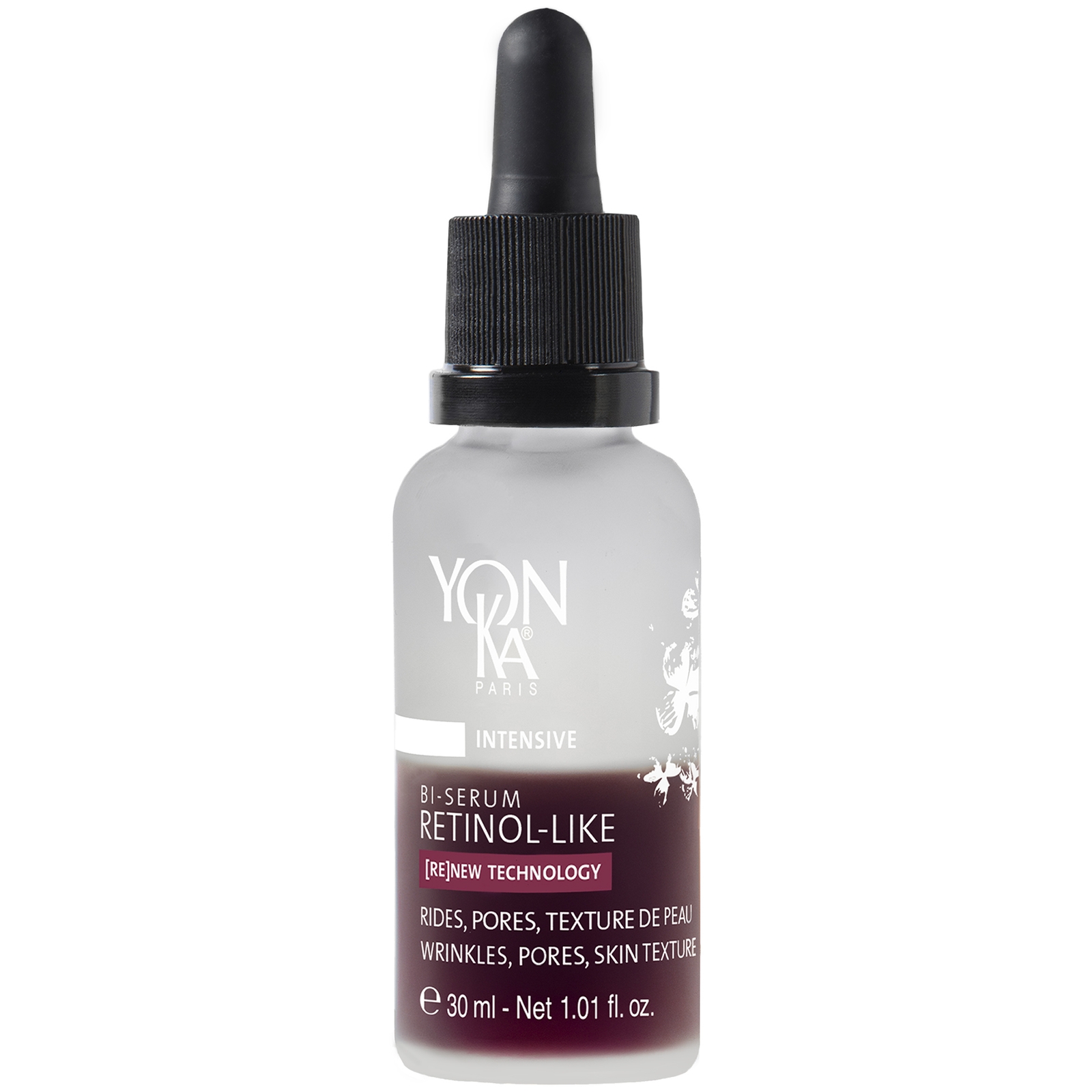 A powerful retinolalternative serum designed to visibly target wrinkles, refine pores, and improve skin texture without irritation. Two 100% natural retinollike ingredients work synergistically to trigger type I and type III collagen production. Biomimetic microalgae firms and smooths wrinkles, while Mastic Tree extract supports collagen production and preserves retinoic acid activity in the skin. Gardenia extract rounds out the formula by providing antioxidant compounds including ferulic acid. Proven results of 90% refined pores, 80% deep wrinkles filled, and 92% smoother skin, this lightweight formula absorbs quickly, and delivers visible results comparable to retinol. | Yon-Ka Paris Skincare YonKa Paris Skincare RetinolLike BiSerum, 30 ml | Dermstore