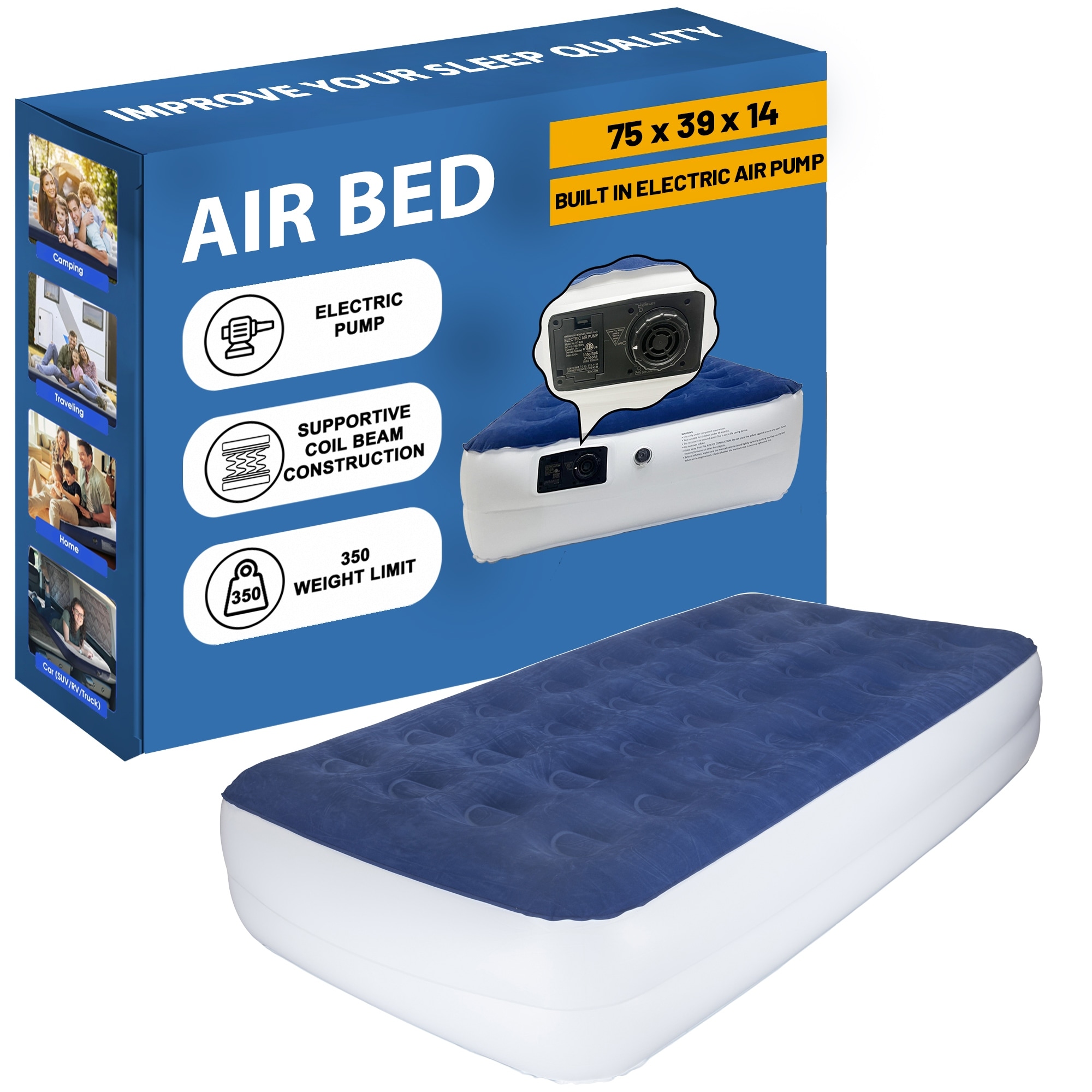 Onetan inflable air mattress has a comfort coil technology for added comfort and support for a better night's rest. It has a multilayer puncture resistant material for increased durability.