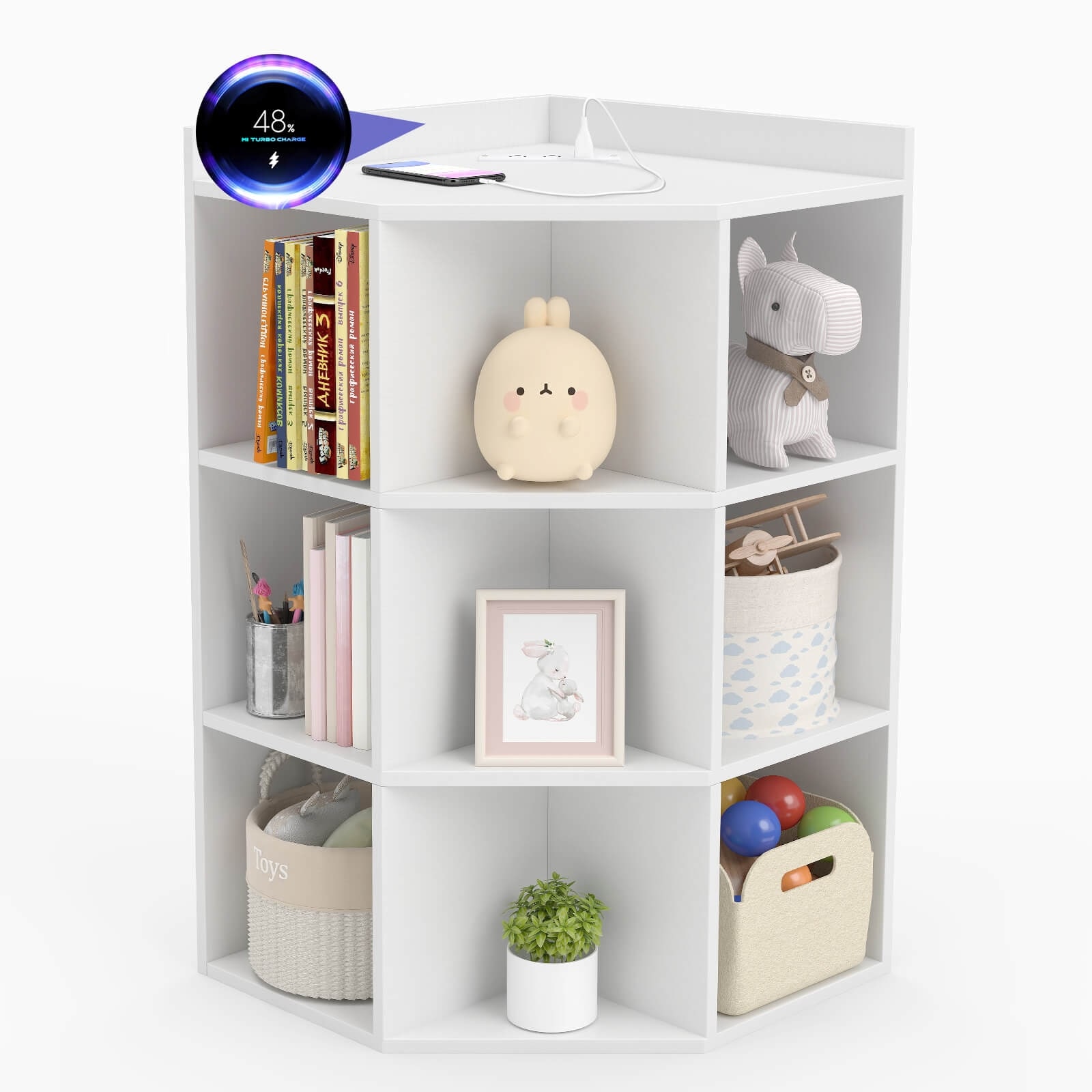 Costway 3-Tier Kids Corner Toy Storage Organizer with USB Ports and - See Details($99.99Value)