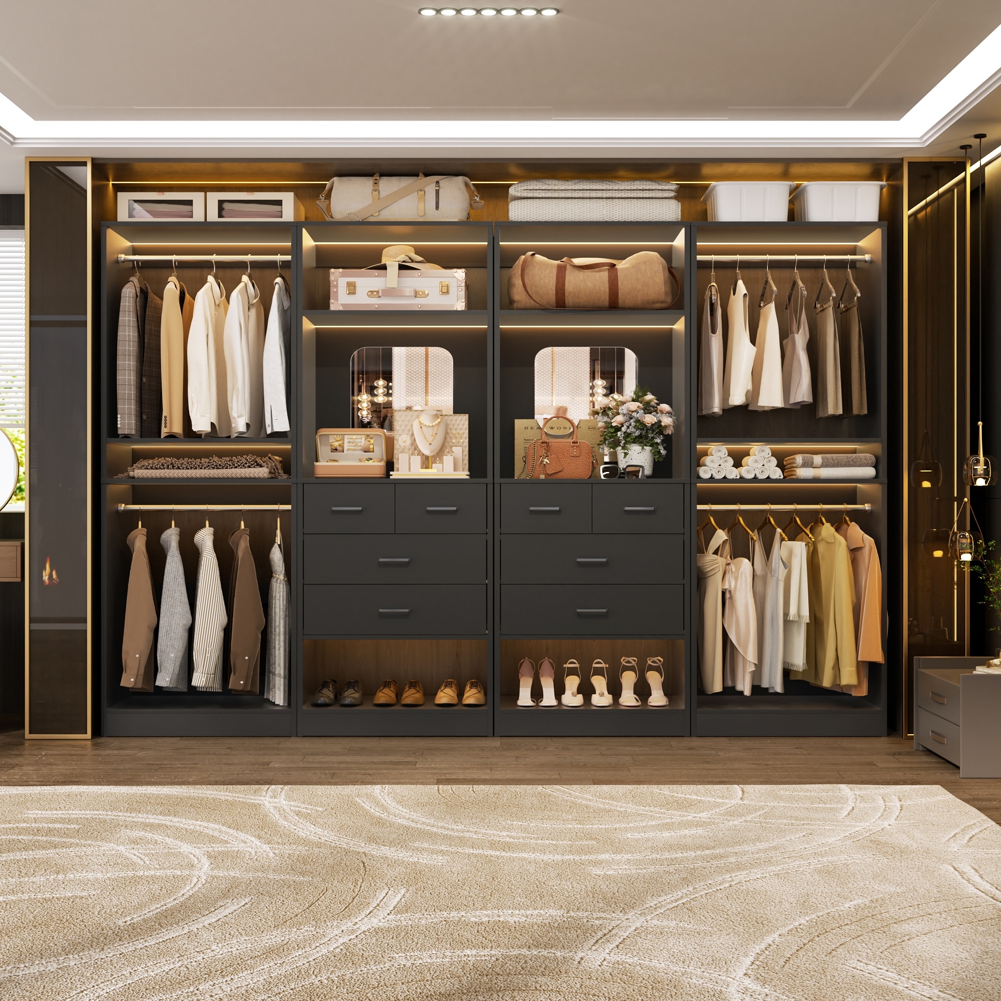 Set of 4 Closet System with 4 Drawer and Hanging Rods, Freestanding Closet Organizer with Storage Shelves($809.99Value)