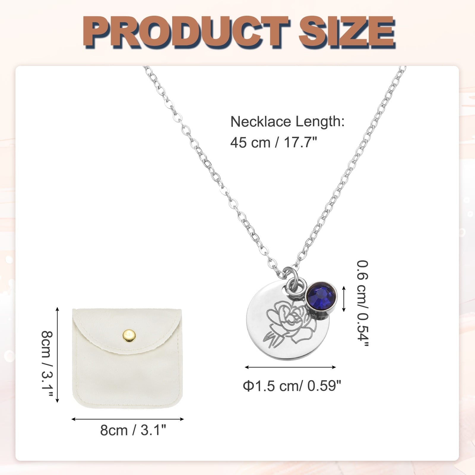Birth Flower Necklaces for Women, Dainty Birthstone Pendant Necklaces, Stainless Steel Month Birth Flower Jewelry - 1.5cm