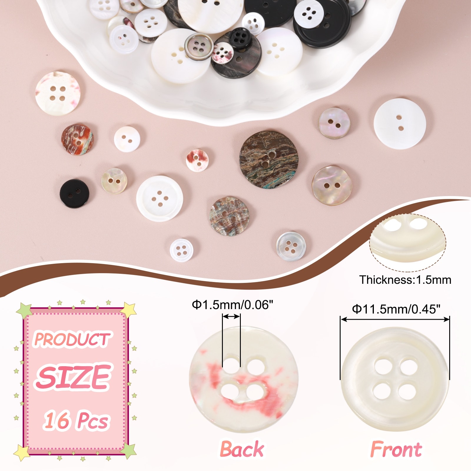 Round Natural Shell Buttons, 4 Holes Mother of Pearl Craft Seashell Sewing Buttons for Shirts Dresses Sewing DIY - Beige Red