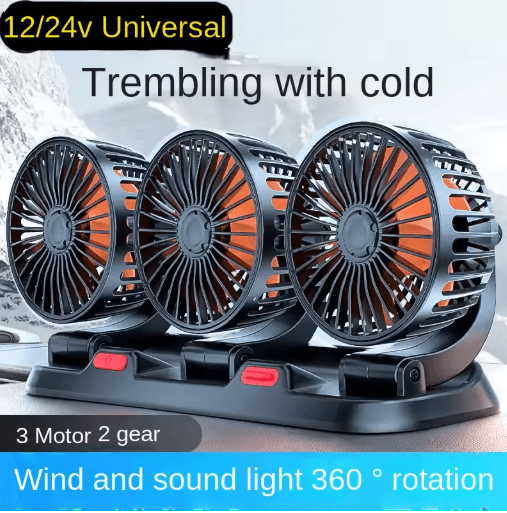 360 Adjustable 3 Head Car Cooling Fan With USB 12V 24V Power 3 Head 24v Car Cigar