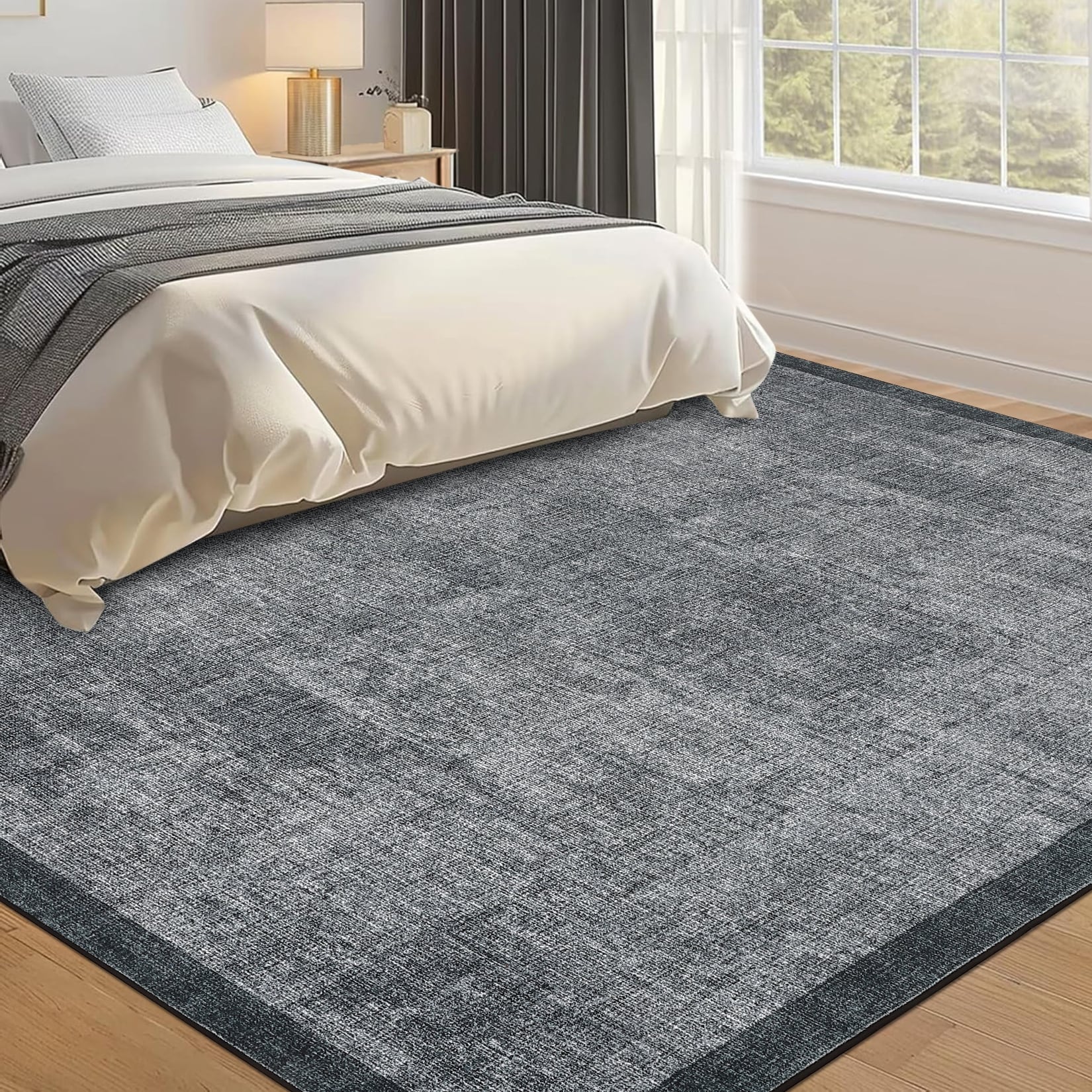 Garvee Modern Bordered Area Rug Washable Soft Low Pile Non-Slip Rugs for Living Room