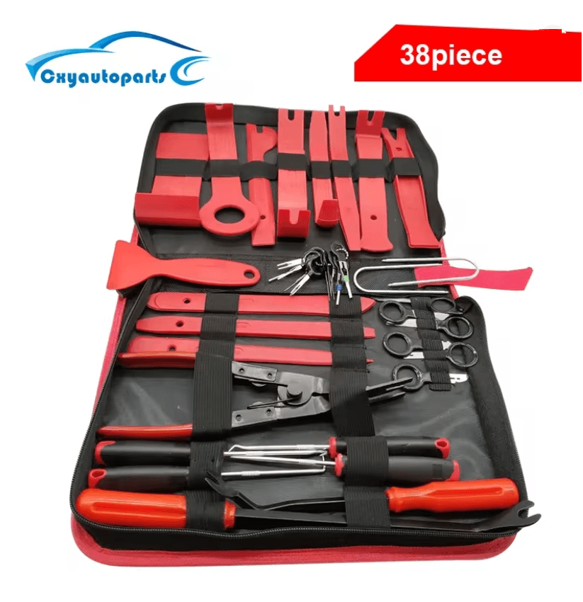 5 Piece Car Interior Trim Removal Tool Set Non Scratch Plastic Pry Kit For Dashboards, Door Panels, And Clips red