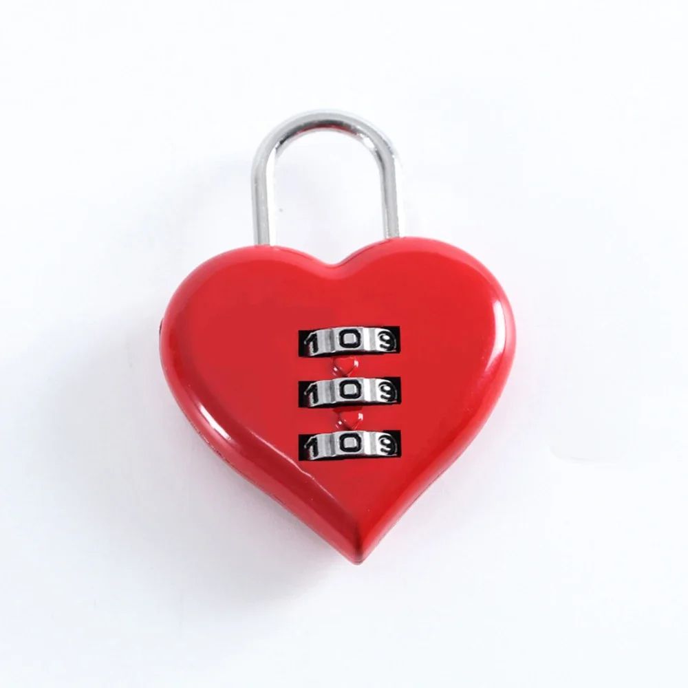 Love Lock Heart Shaped Resettable 3Digit Code Mini Padlock For Bags, Diaries, And Gifts red