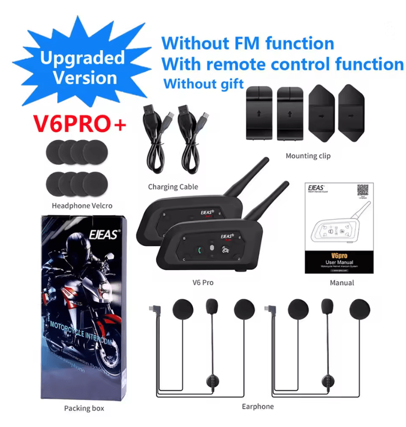 EJEAS V6 Pro Bluetooth Motorcycle Intercom Headset For Helmet Communication 2 Pcs V6 Pro Plus