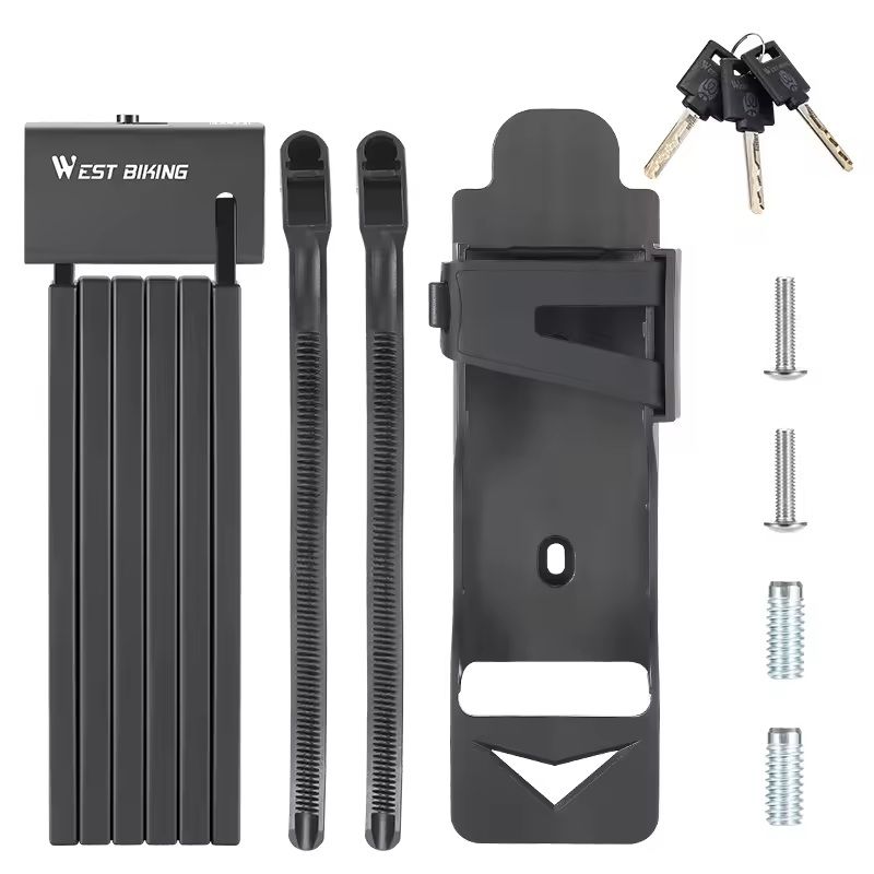 Foldable Bike Lock Heavy Duty Anti Theft Chain Lock With 3 Keys 37.4 In Black