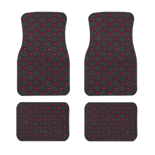 4PCS Universal PU Leather Waterproof Car Floor Mats All Weather Auto Foot Pad Protector Carpet For Front And Rear black Red