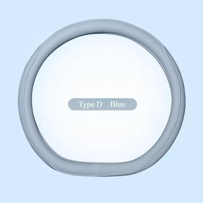 Napa Leather Patchwork Steering Wheel Cover Non Slip Breathable Universal Fit 15 Inch blue Type D