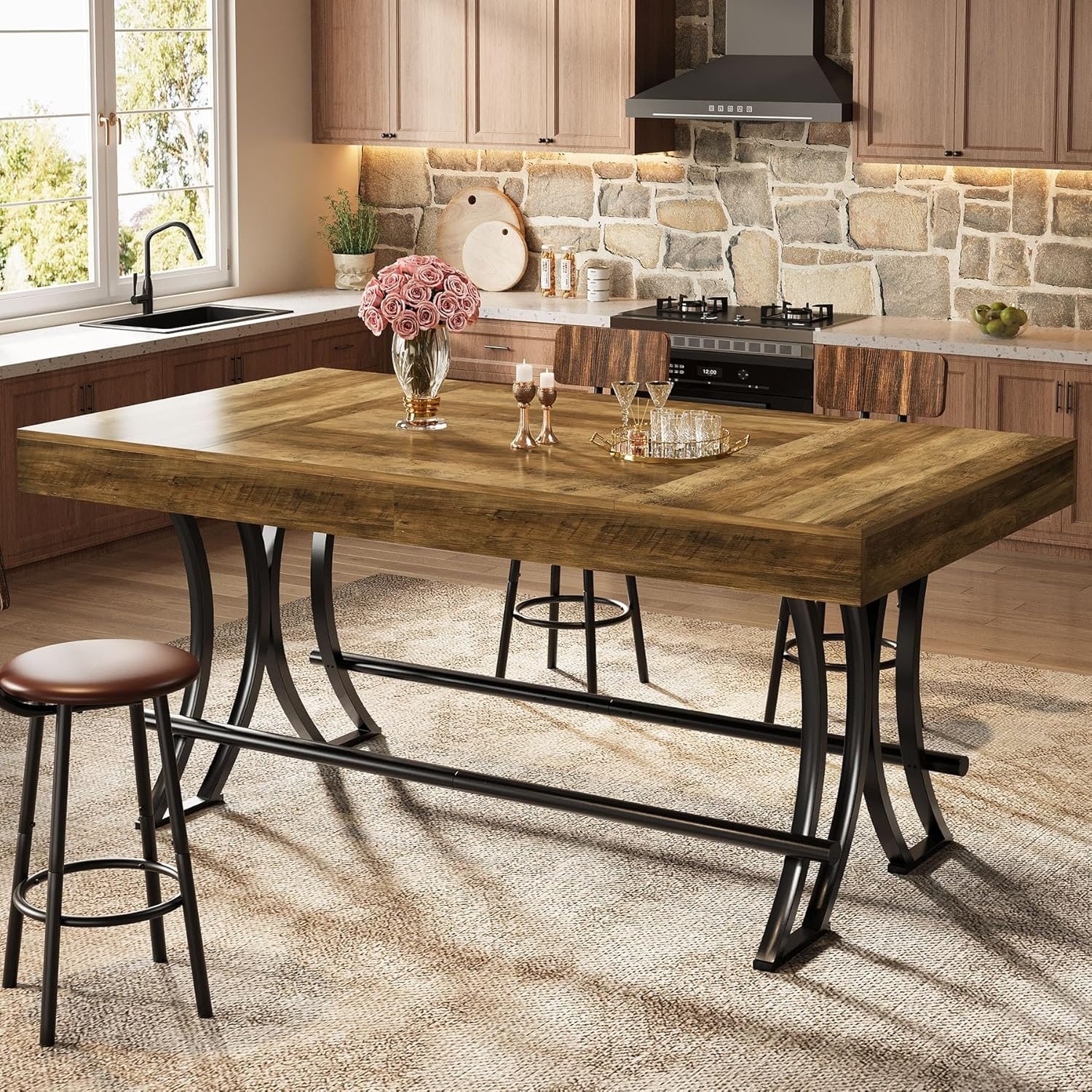 70.9" Wooden Home Bar Table with Wine Glass Holder, Pub Storage Unit Accent Table for Home Patio Basement