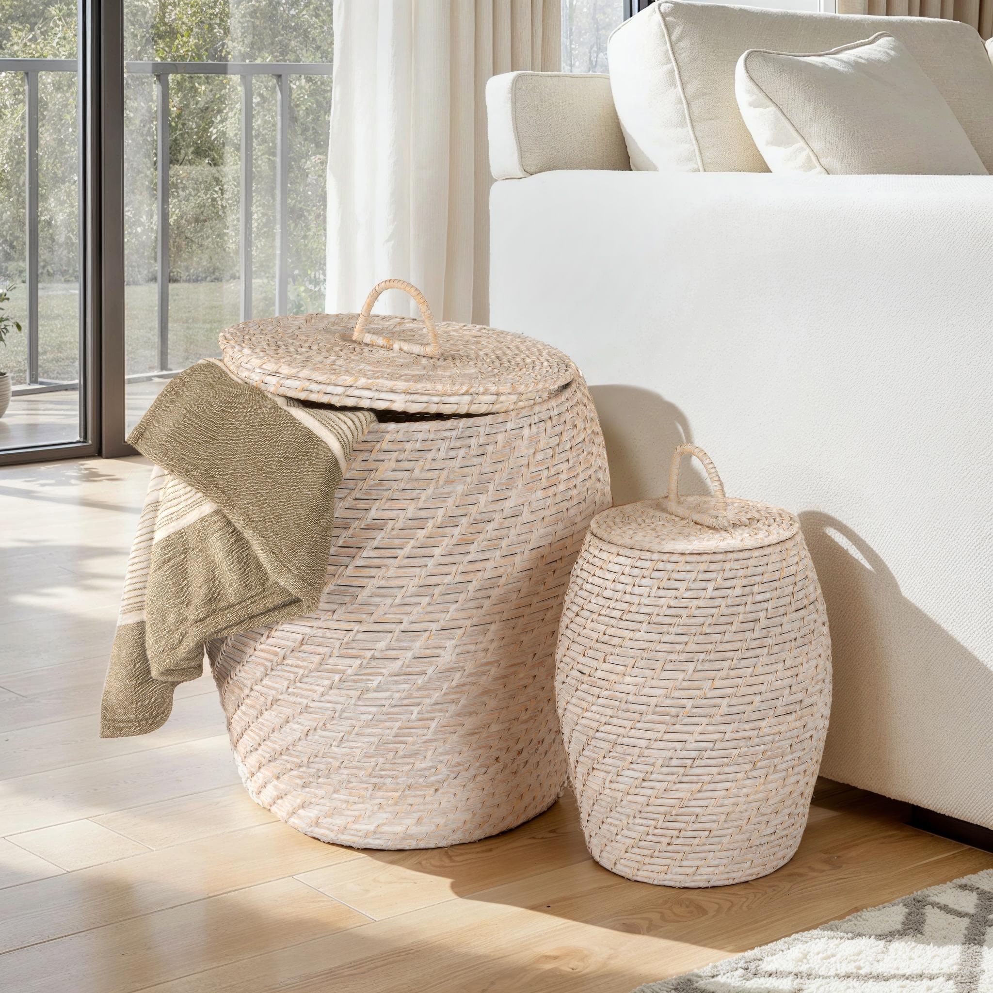 Hand-Woven Rattan Wicker Storage Baskets with Lids, Set of 2