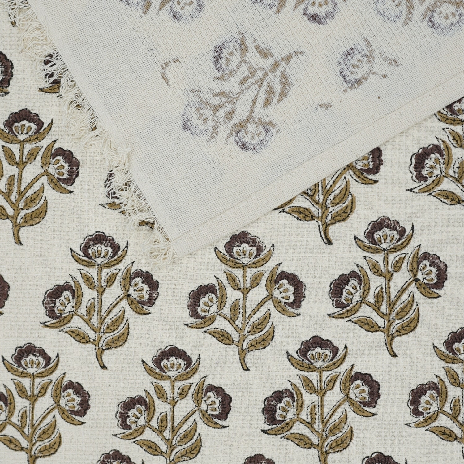 Fabdivine Honeycomb or Waffle Weave Hand Block Floral Print Hand Towel, Kitchen Gift Use
