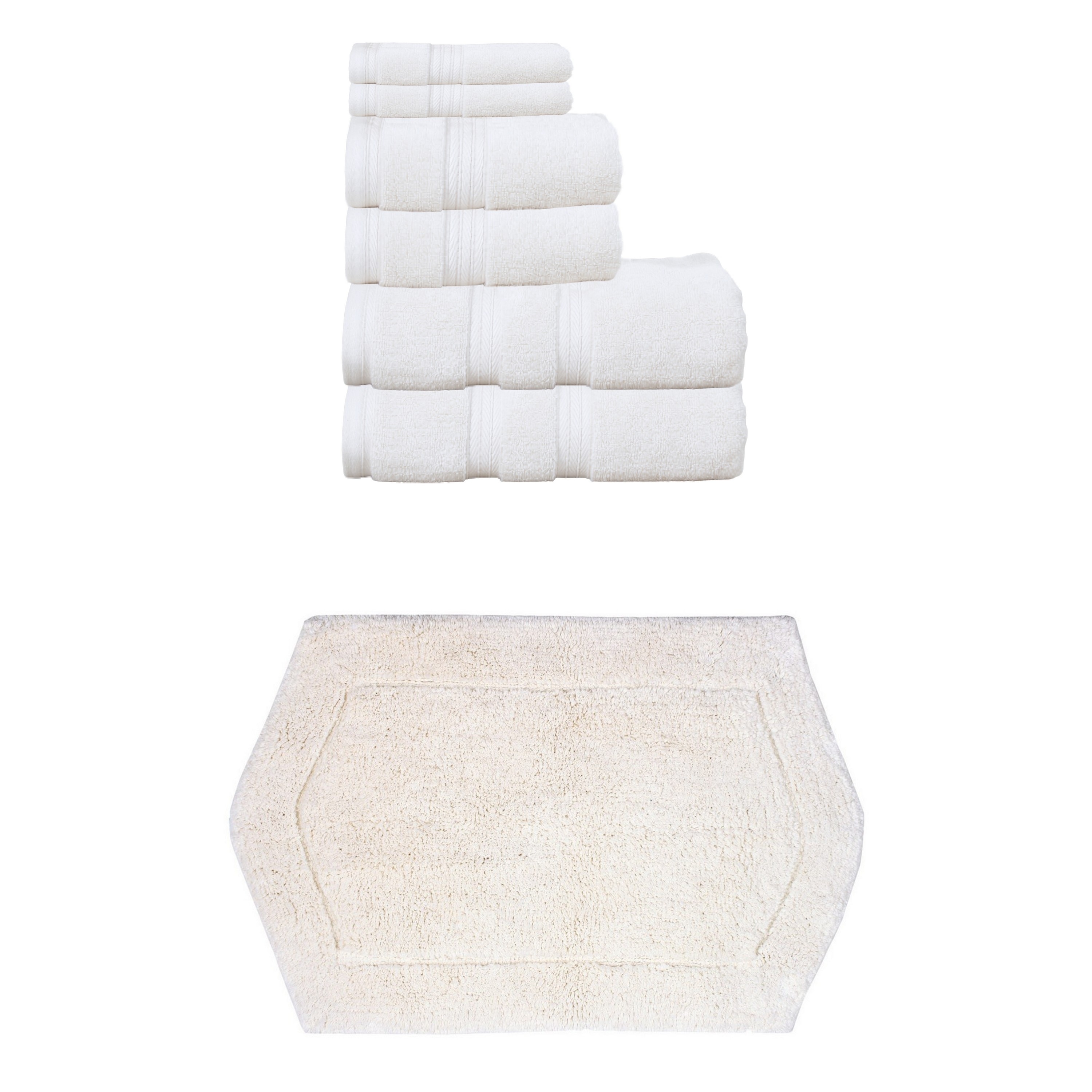 Home Weavers Waterford Collection 100% Soft Cotton 6 Pc Towel Set & 1 Pc 21x34" Bath Rug, Machine Washable & Non Slip (Set of 7)