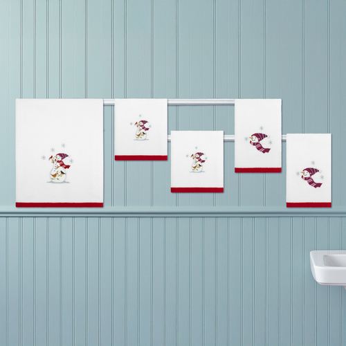 Holiday Cheer Snowman Bath Towel Set White Bath Hand Fingertip, Bath Hand Fingertip, White