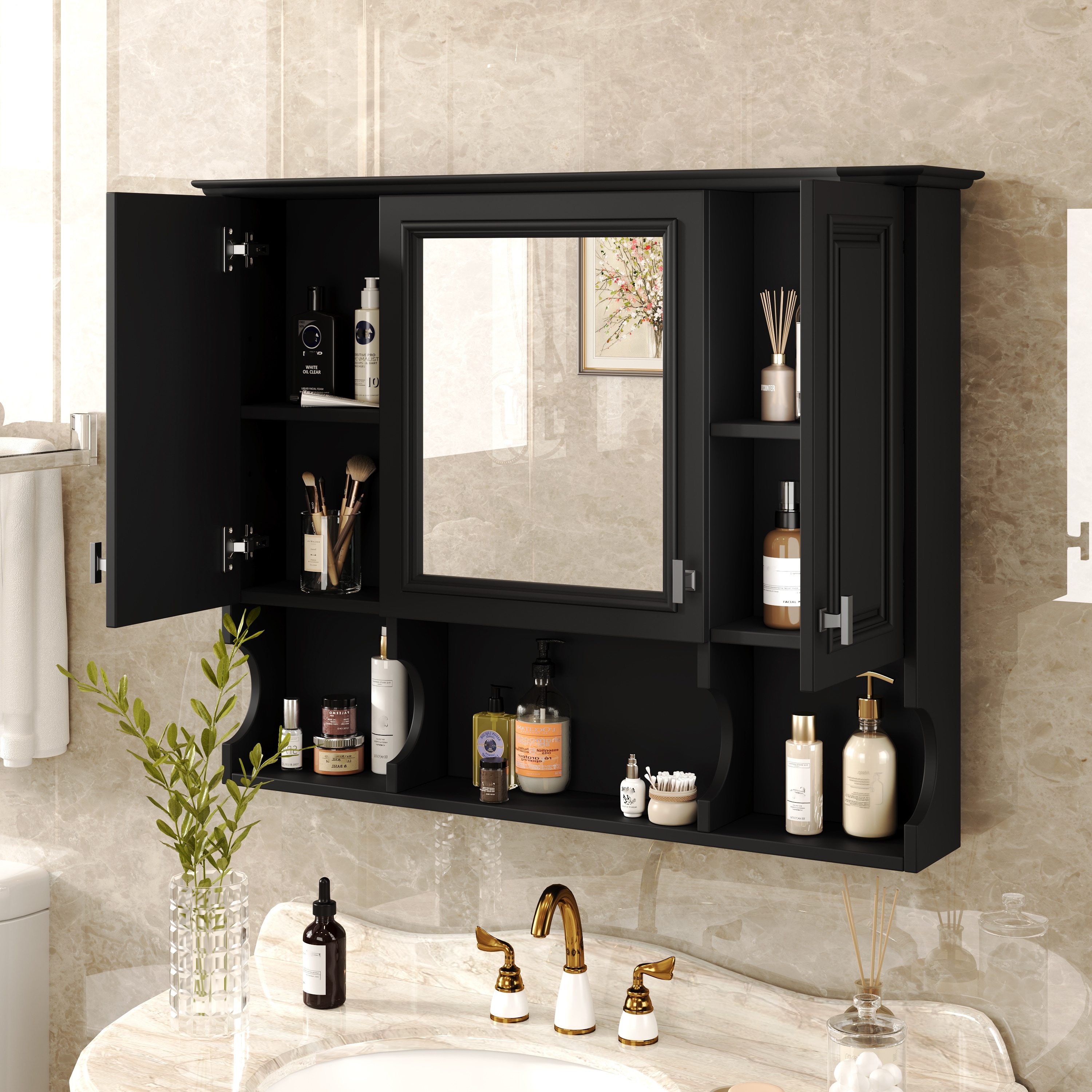 36-Inch Bathroom Mirror Cabinet with 3 Doors, Wall Mounted Medicine Cabinet with Adjustable Shelves and Open Storage