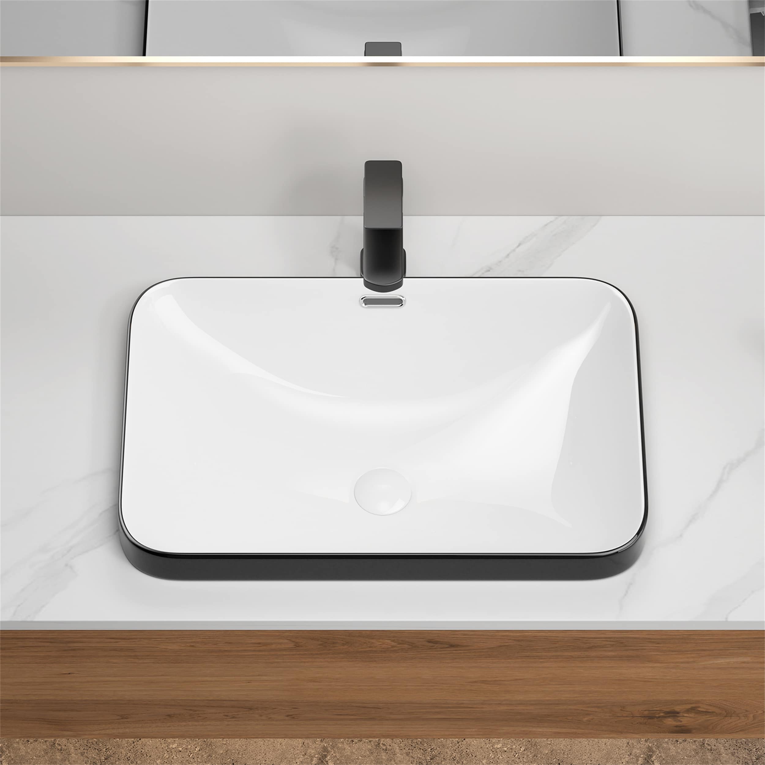 20x15 Inch White Ceramic Rectangular Vessel Bathroom Sink