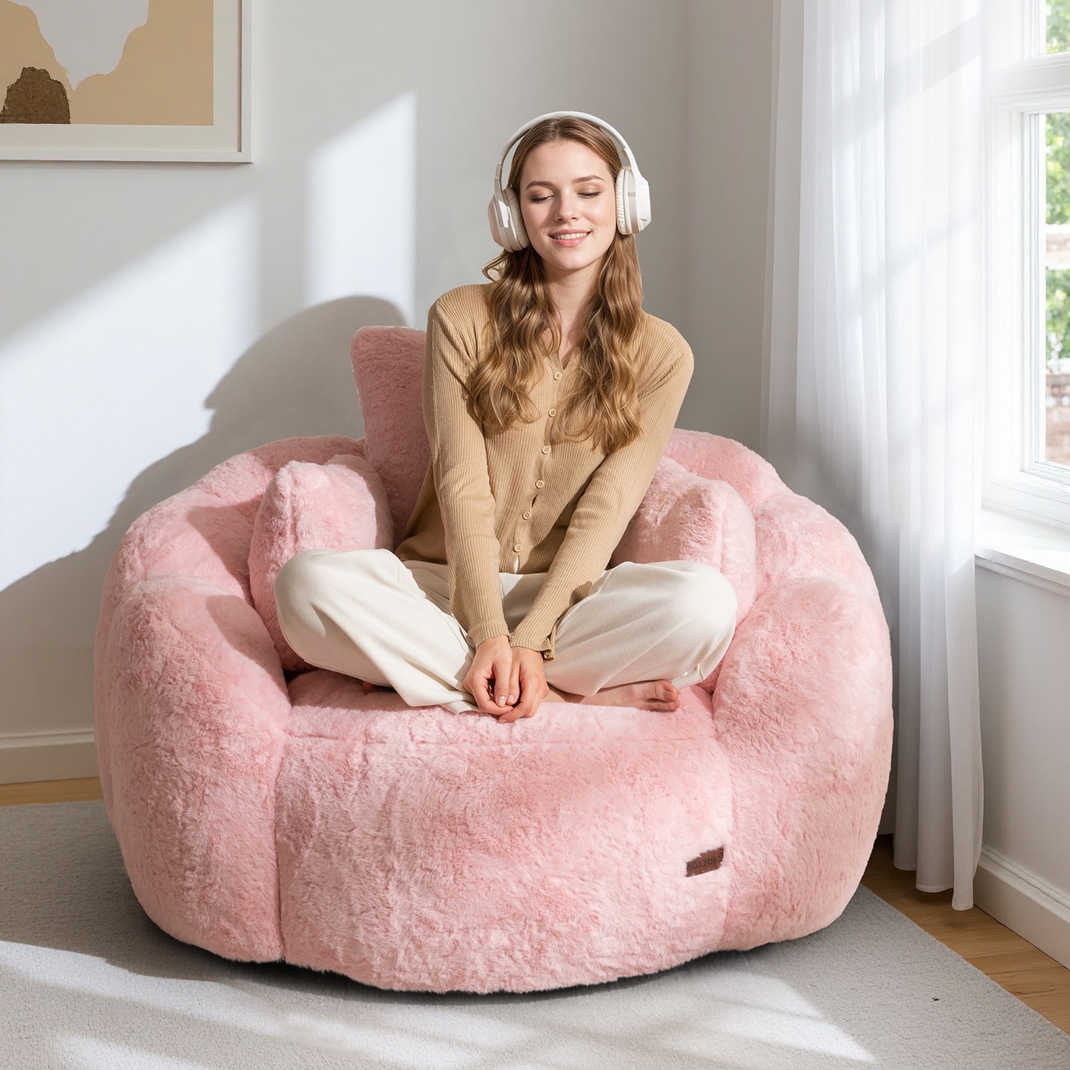 GDFStudio - Faux Fur 42.5" Supportive Bean Bag Sofa with Back Support