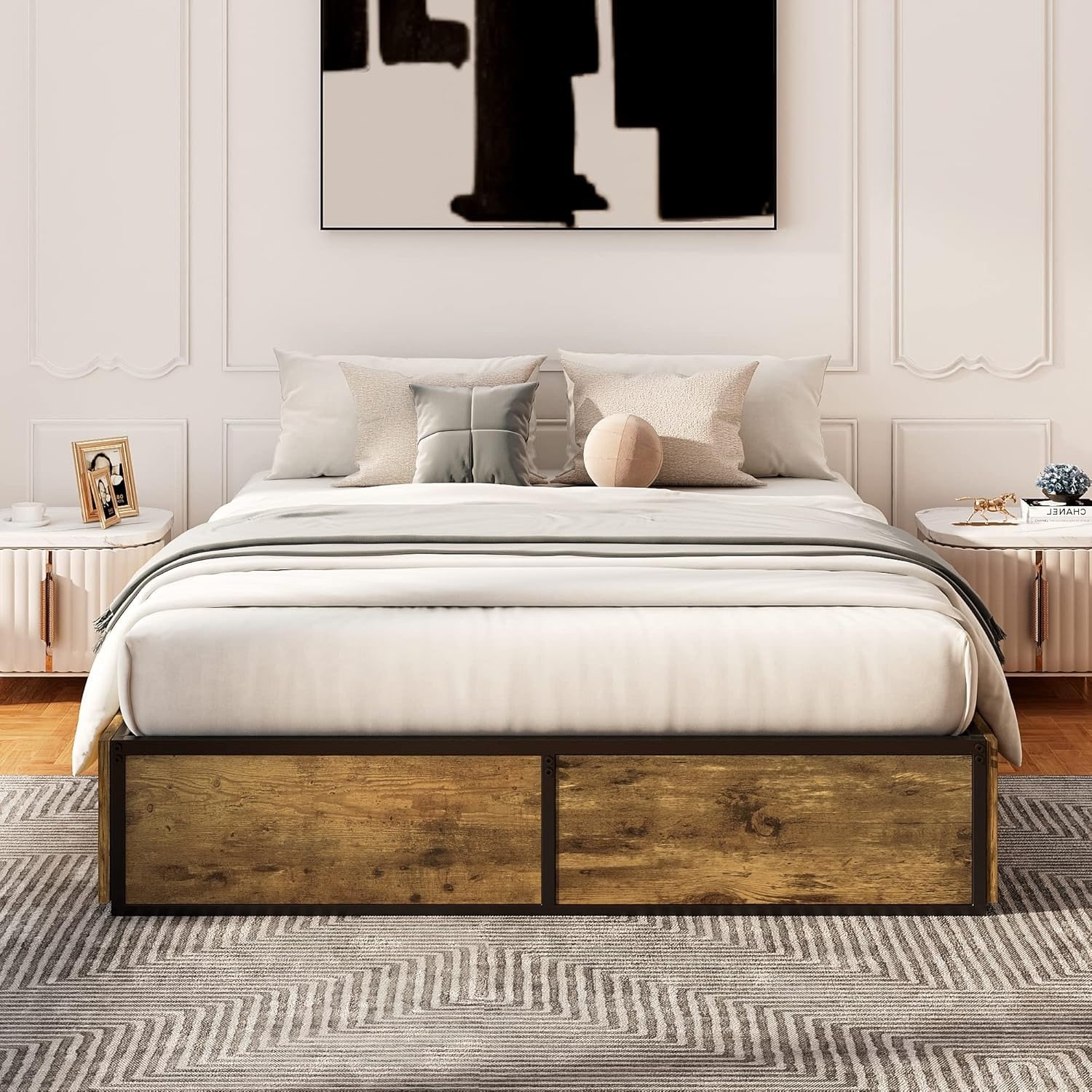 Industrial Storage Bed with Drawers, Wooden Metal Platform, Sturdy & Noise-Free, Full Size for Bedroom & Apartment