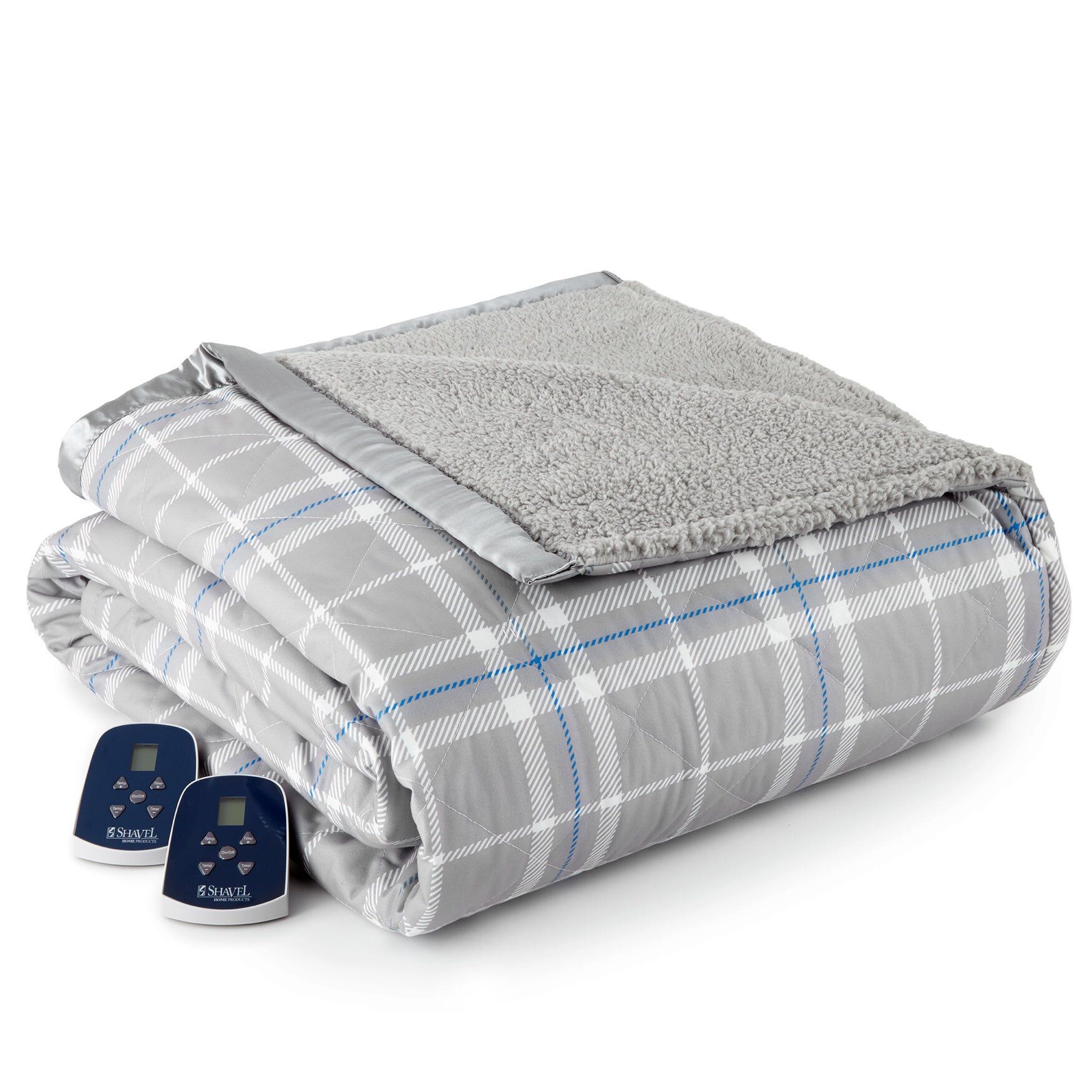 Micro Flannel Sherpa Electric Blanket by BrylaneHome in Plaid Gray (Size FULL)