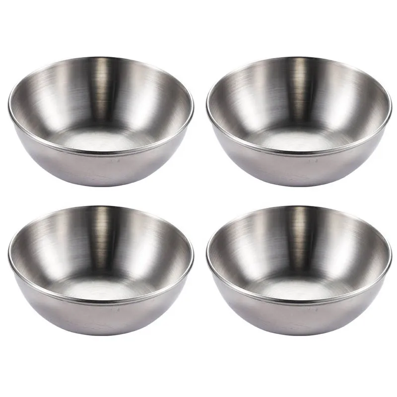 Stainless Steel Golden Appetizer & Seasoning Dishes, Serving Tray Set, Spice Plates, Sauce Bowls For Kitchen Tableware silver 4pcs