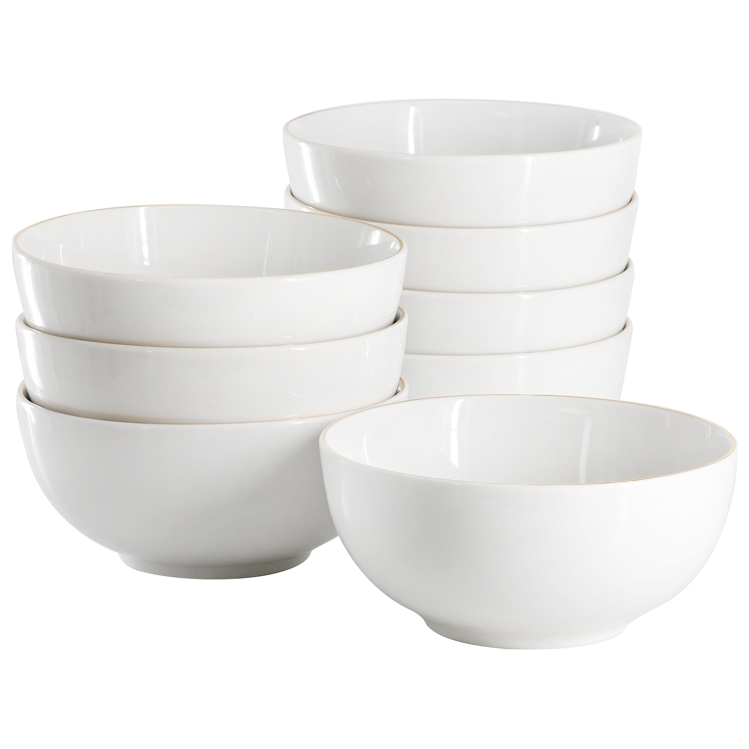 Gibson Set of 8, Fine Ceramic 6 Inch 22 Ounce Cereal Bowl White with Gold Rim