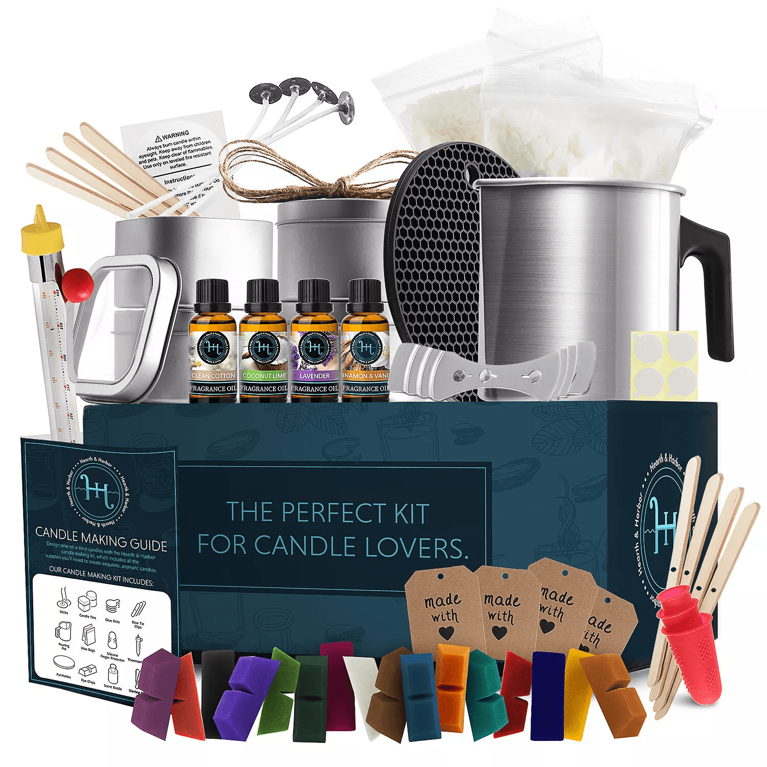 Complete Candle Making Kit Includes 2 Lbs Soy Wax, 16 Color Dye Blocks, 4 Fragrance Oils, Melting Pot, Thermometer, Tins Complete Candle Making Kit Includes 2 Lbs Soy Wax, 16 Color Dye Blocks, 4 Fragrance Oils, Melting Pot, Thermometer, Tins