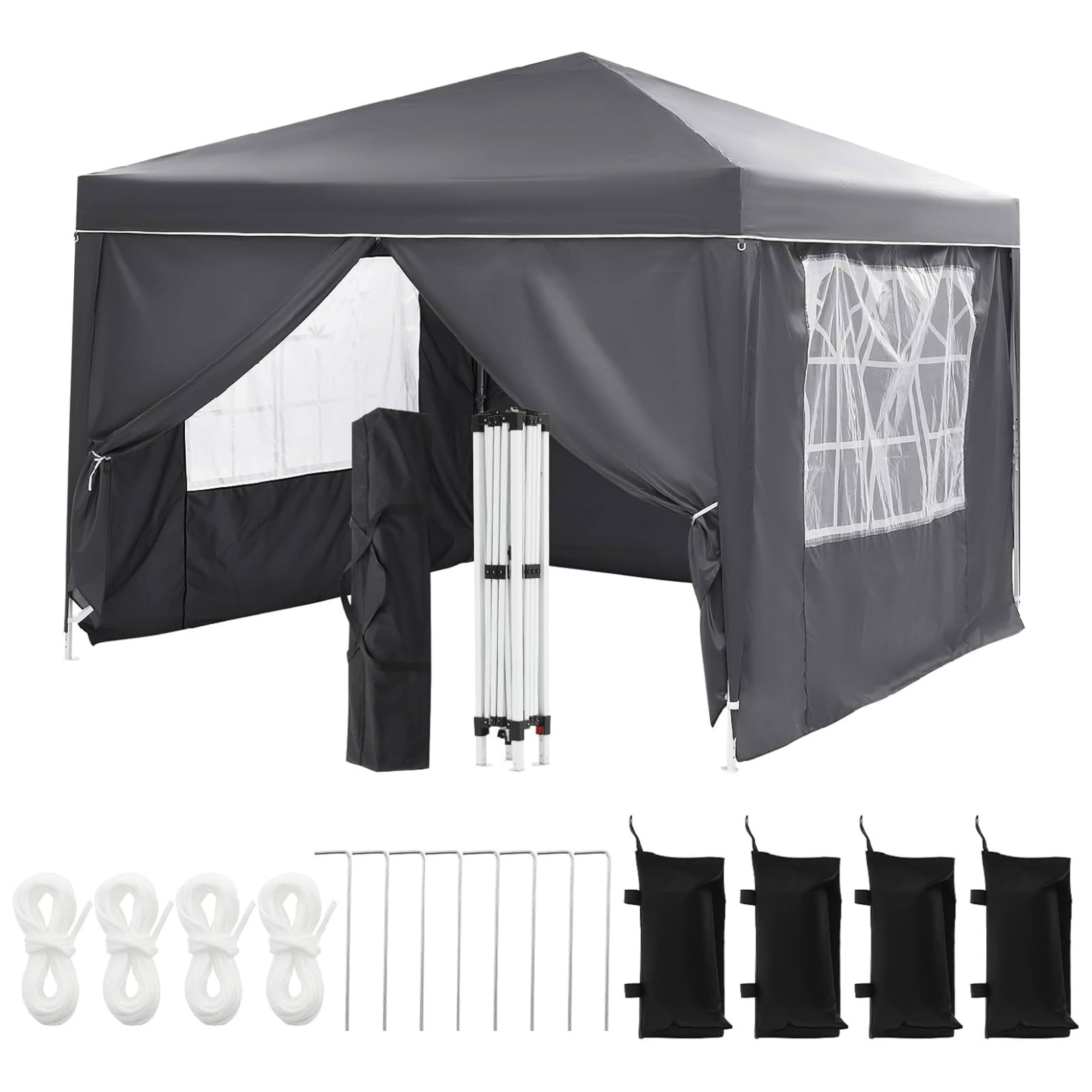 10X10 Ft Instant Waterproof Portable Pop-Up Canopy Tent with 4 Sidewalls for Outdoor Camping, Beach, Backyard