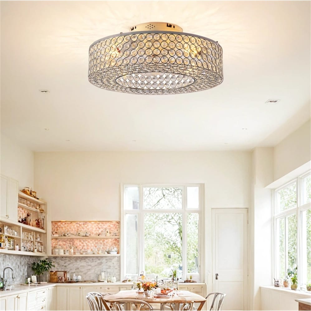 19.6'' Crystal Ceiling Fans w/Remote,Flush Mount Ceiling Fan w/Light