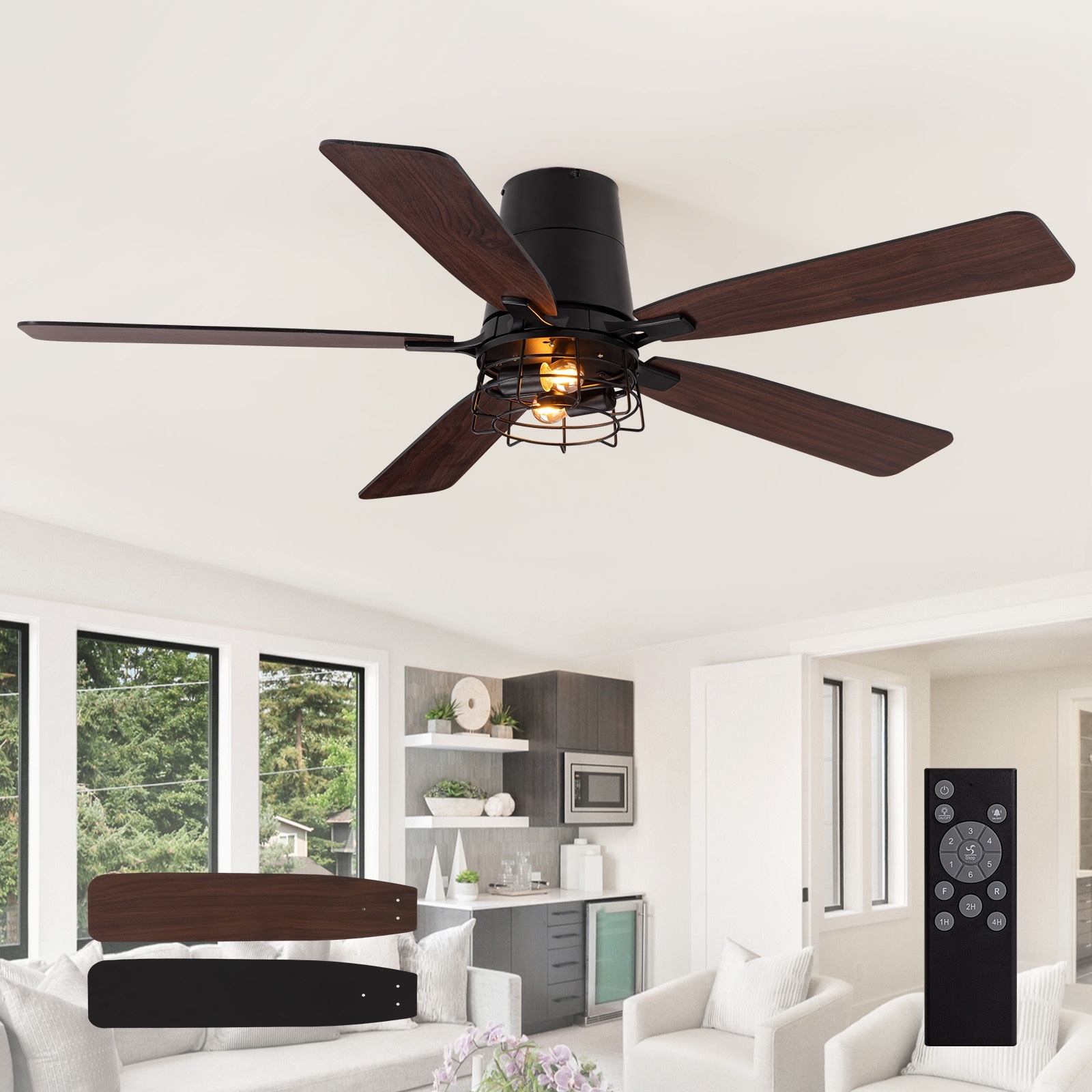 Modern Low Profile Small Caged Ceiling Fan with Light and Remote