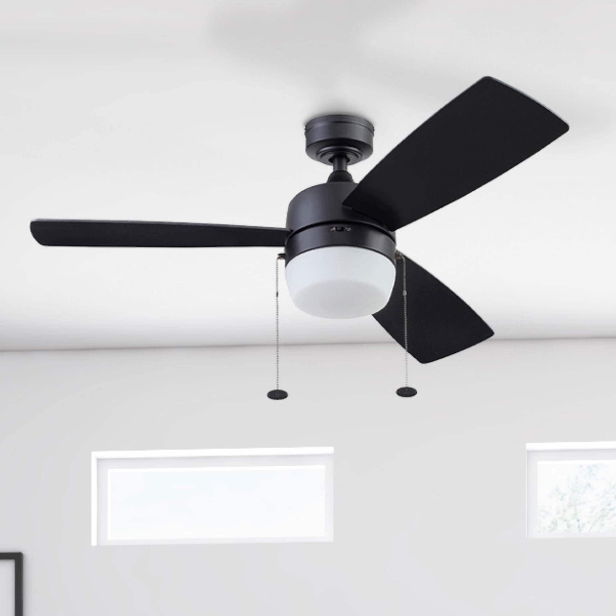 Matte Black 4 Blade Ceiling Fan with Integrated LED Light Remote Control