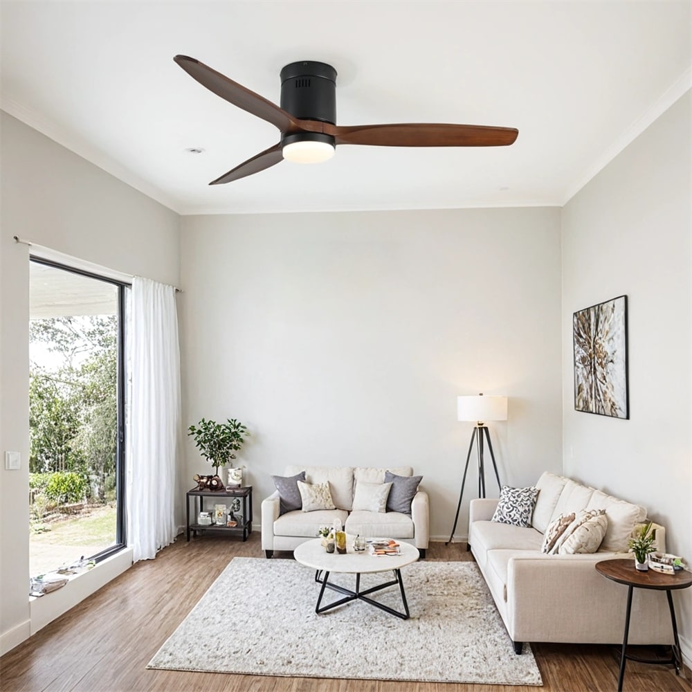52 Inch Ceiling Fan with Light, 3 Light Walnut Solid Wood Blades,Remote Control,6-speed Reversible DC Motor