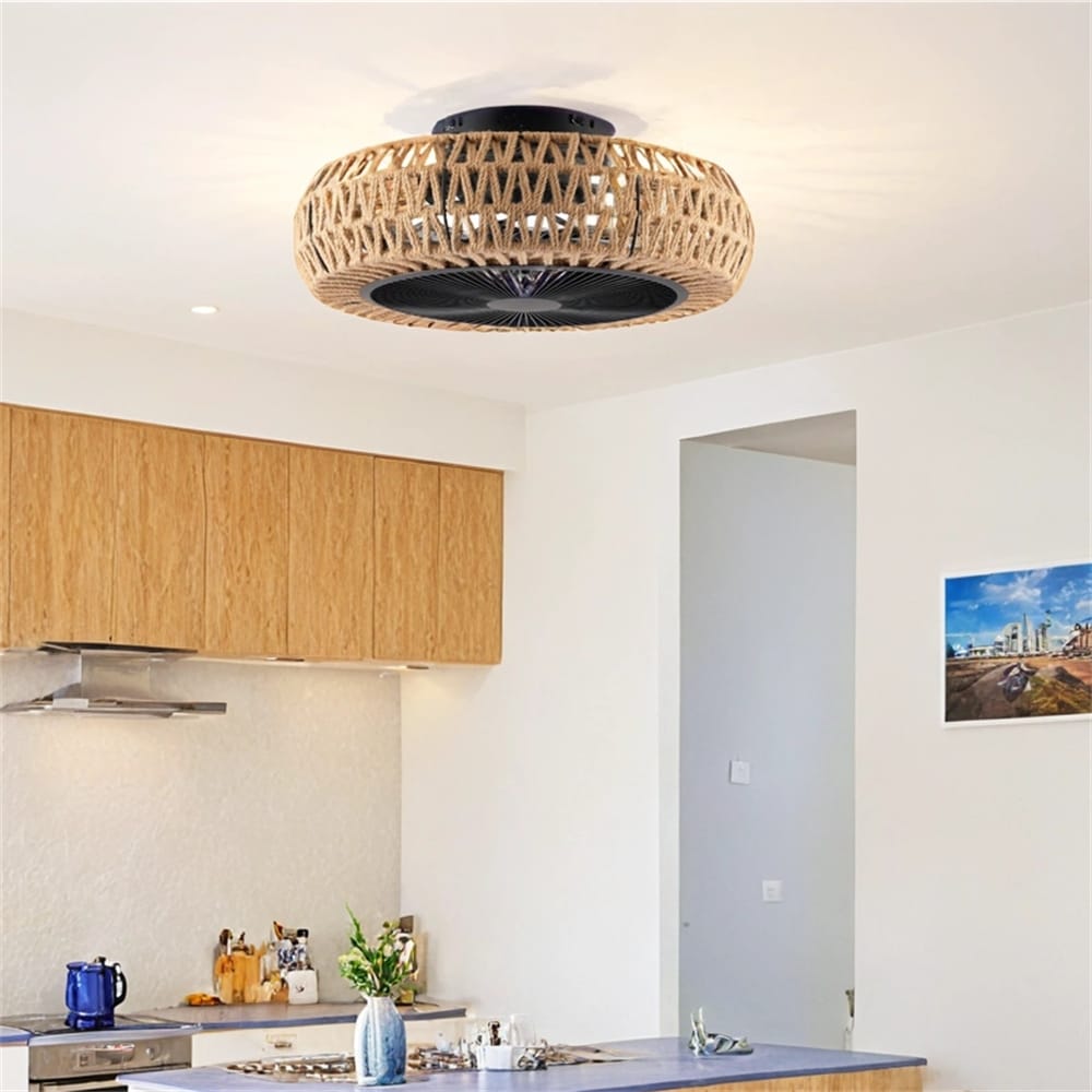 20"Vintage Rope Fan Light w/Remote Control 6 Speed Airflow Ceiling Fan