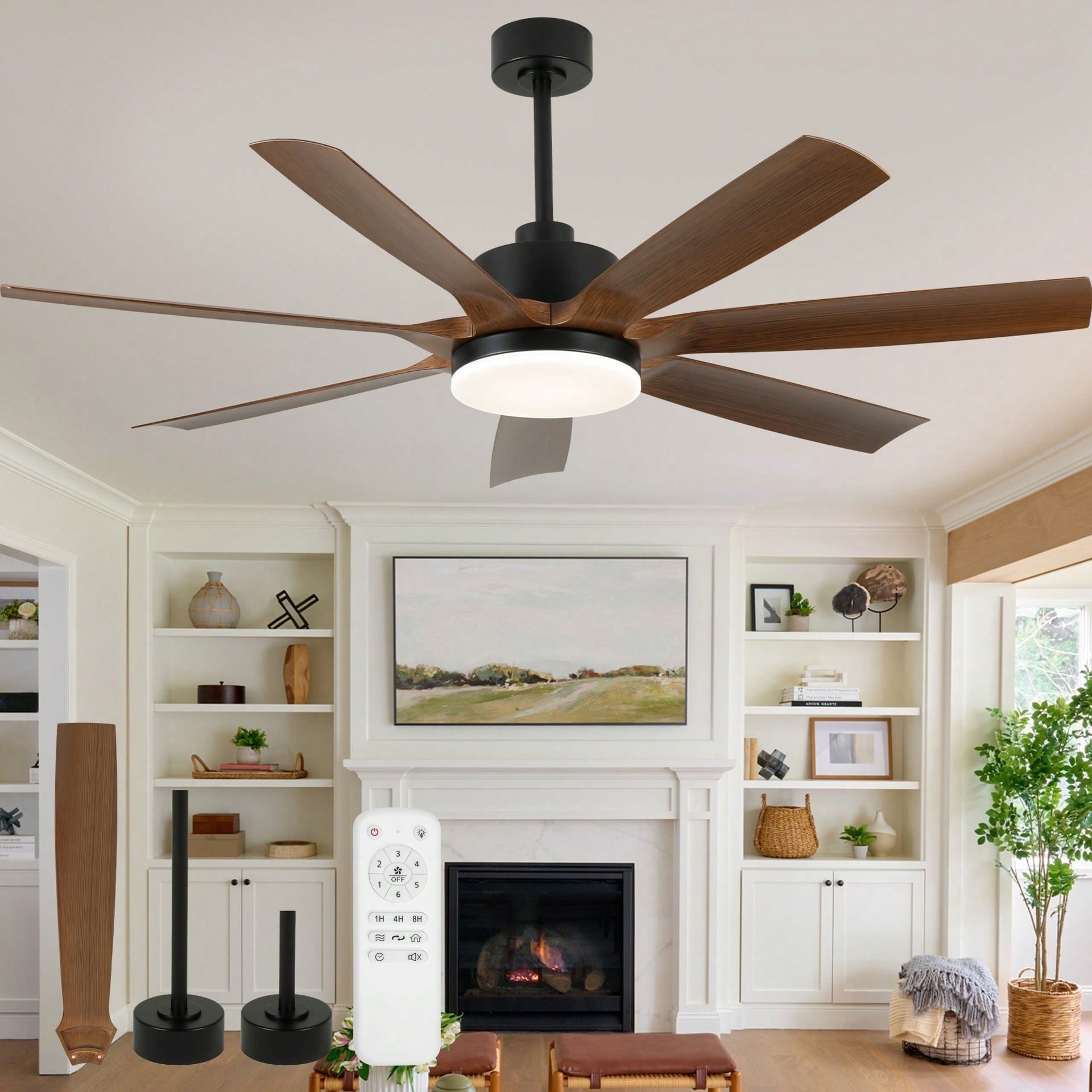 52 Inch Ceiling Fan with 6 levels Adjustable Remote Control and 3 Solid Wood Blade Ceiling Fan, Noiseless Reversible DC Motor