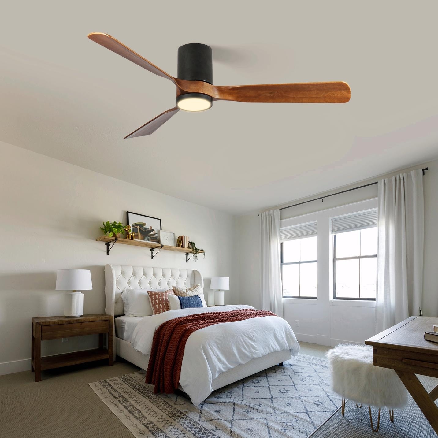 52-inch Ceiling Fan with Light, 3 Wood Blades, Remote Control, Reversible DC Motor for Living Room (Black+Dark Walnut)