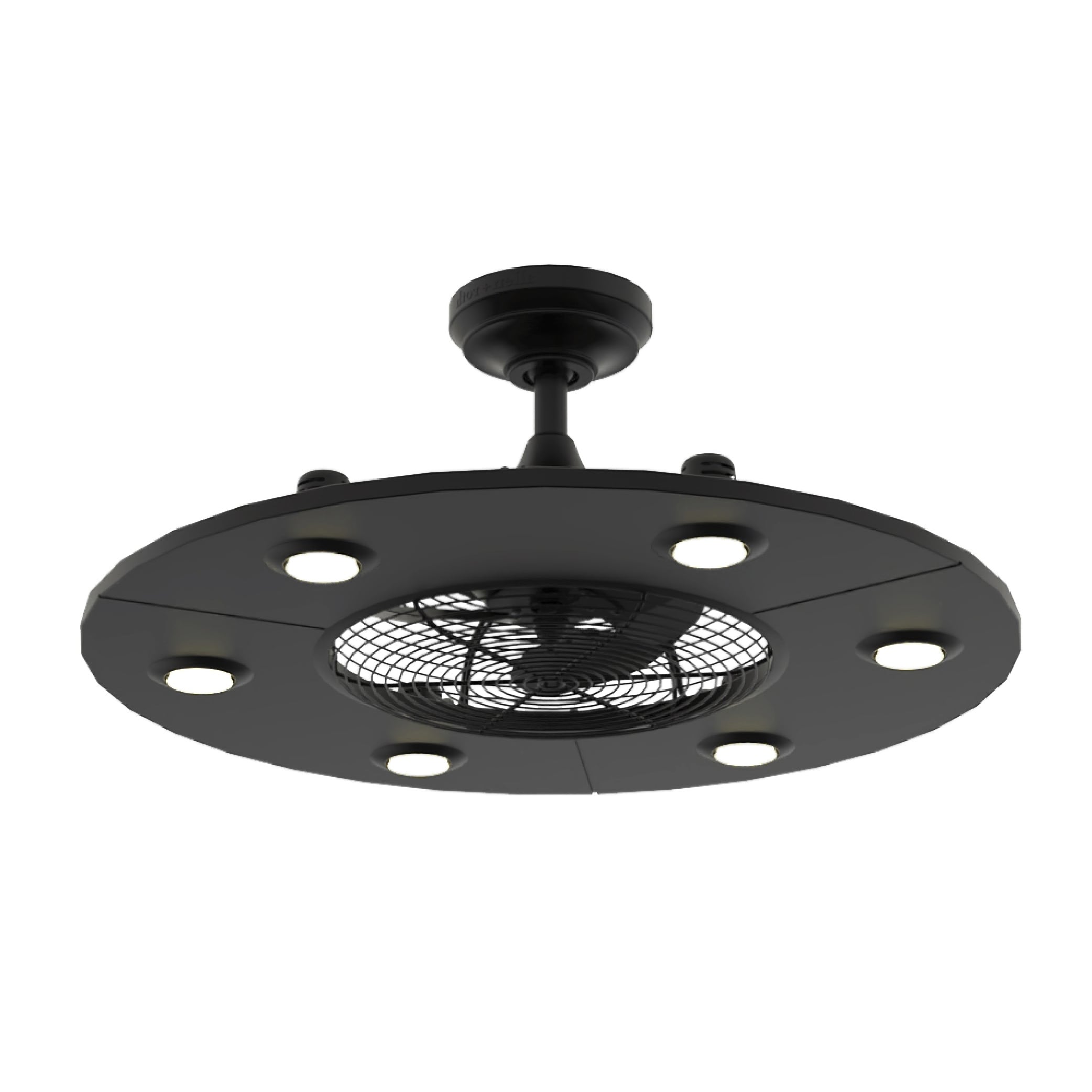 42" Matte Black Retractable 3-Blade Crystal LED Ceiling Fan with Remote