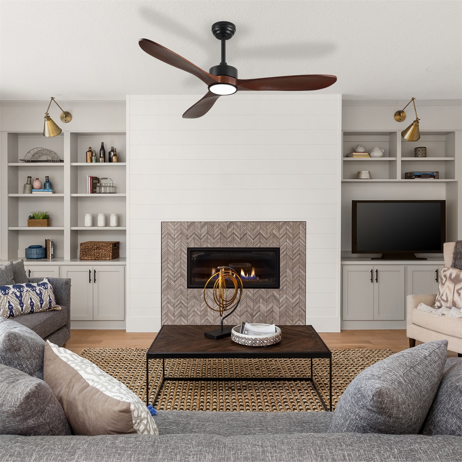 LED Integrated Ceiling Fan Lighting with Reversible Blades Quiet DC Motor Remote Ceiling Fan ETL Certified Downrod Ceiling Fan